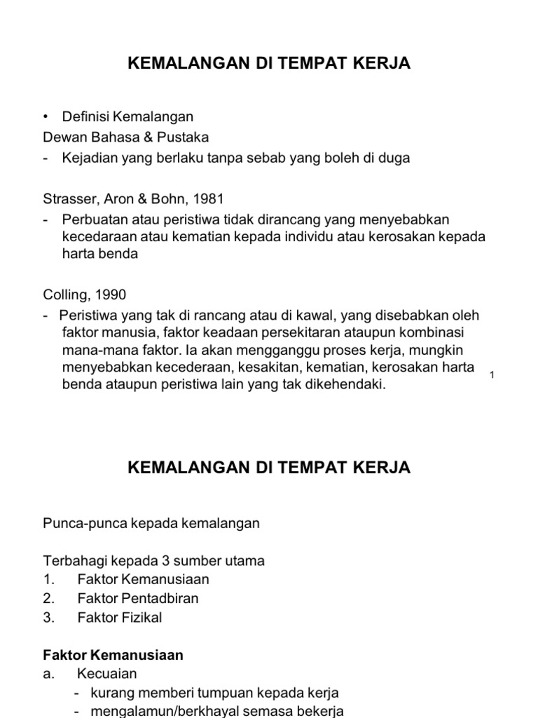 Isu Datang Lewat Doc Pengenalan Masalah Pekerja Format 640 x 829. Peraturan-peraturan Keselamatan dan Kesihatan Pekerjaan Jawatankuasa Keselamatan dan Kesihatan 1996. 32Kemalangan Di Tempat Kerja ertinya kemalangan dalam kampus UMT yang berpunca dan terbit daripada pekerjaan yang dilakukan oleh warga UMT staf UMT pelajar UMT kontraktor dilantik UMT.